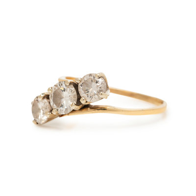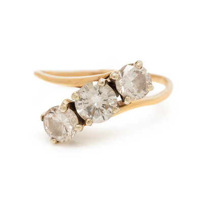 Containing one round brilliant cut diamond weighing approximately 0.60 carat and two round brilliant cut diamonds weighing approximately 0.80 carat total. Mounted in yellow gold.