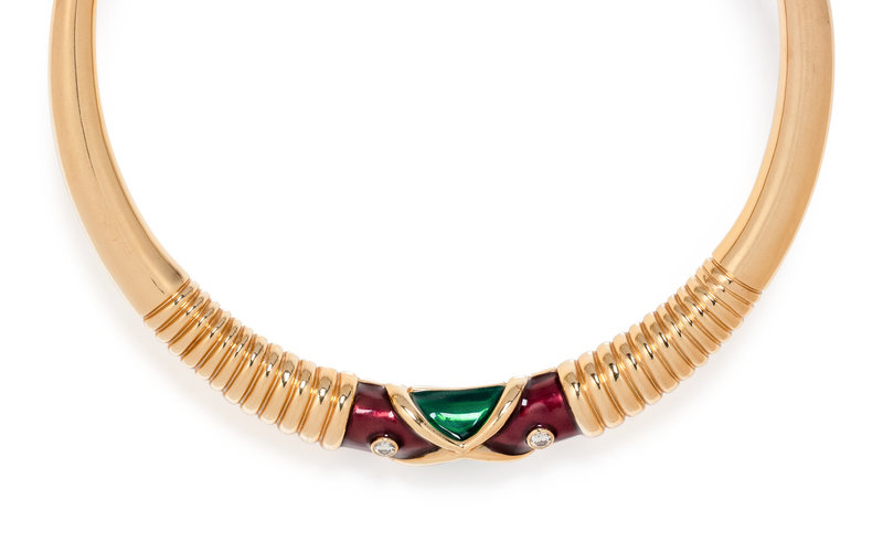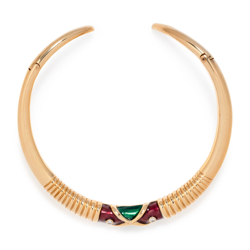 YELLOW GOLD, DIAMOND AND ENAMEL COLLAR NECKLACE