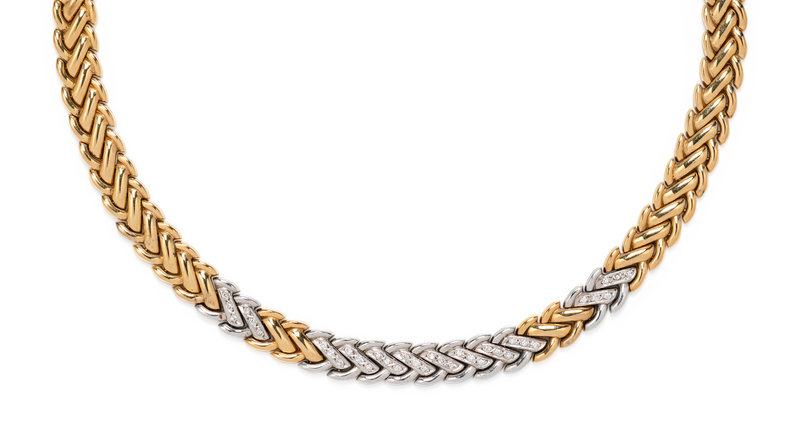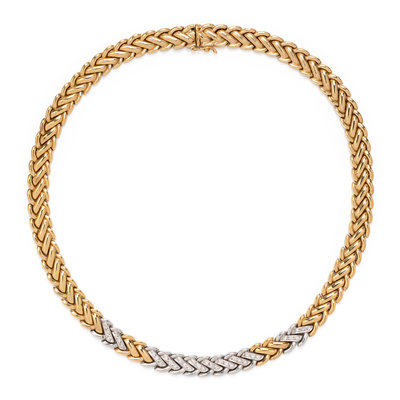 YELLOW GOLD, PLATINUM AND DIAMOND NECKLACE