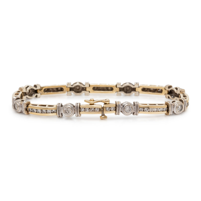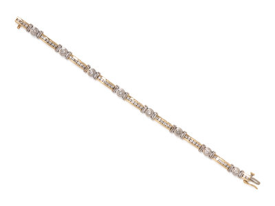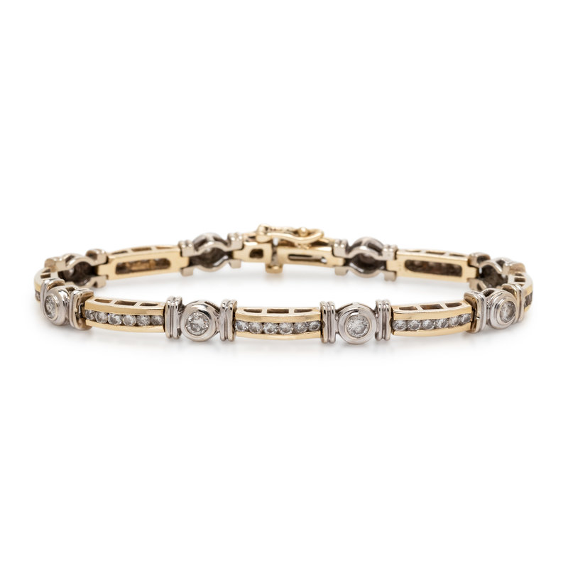 Containing 56 round brilliant cut diamonds weighing approximately 2.00 carats total. Mounted in bicolor gold.