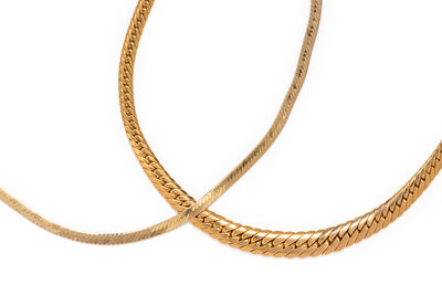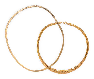 Consisting of a graduated herringbone chain measuring approximately 6.00-10.00 mm wide, together with a herringbone chain measuring approximately 5.00 mm wide.