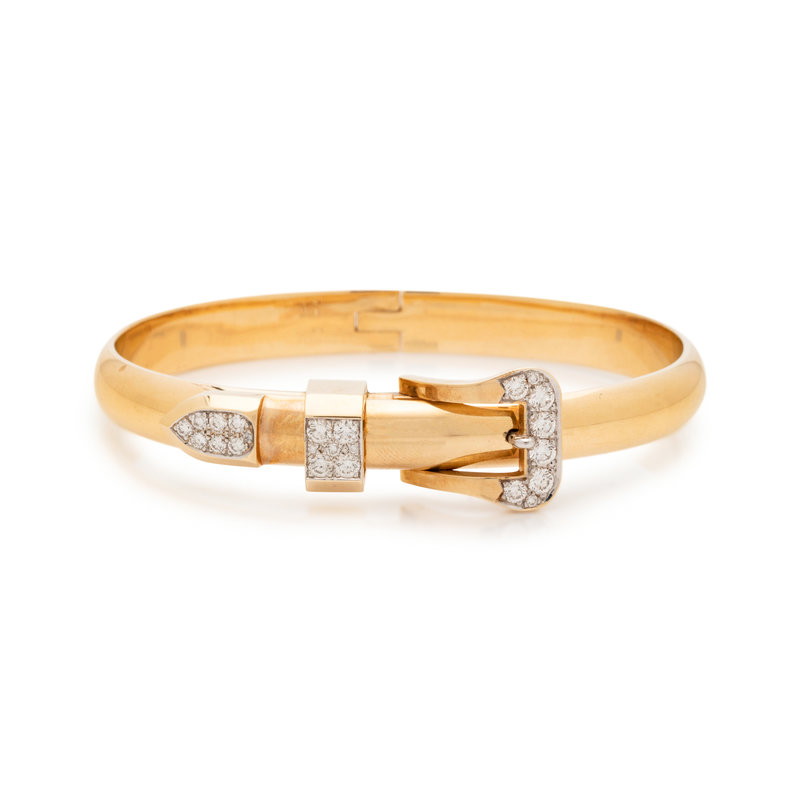 YELLOW GOLD AND DIAMOND BELT MOTIF BANGLE BRACELET