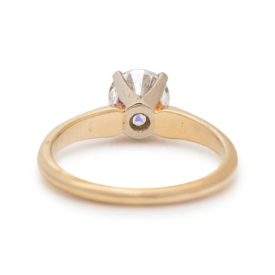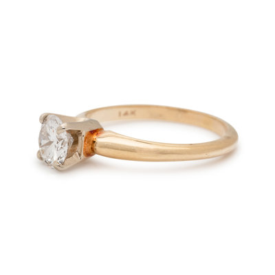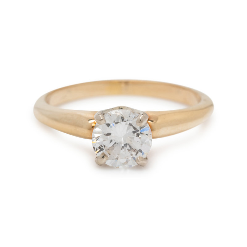 Containing one round brilliant cut diamond weighing approximately 0.75 carat. Mounted in yellow gold.