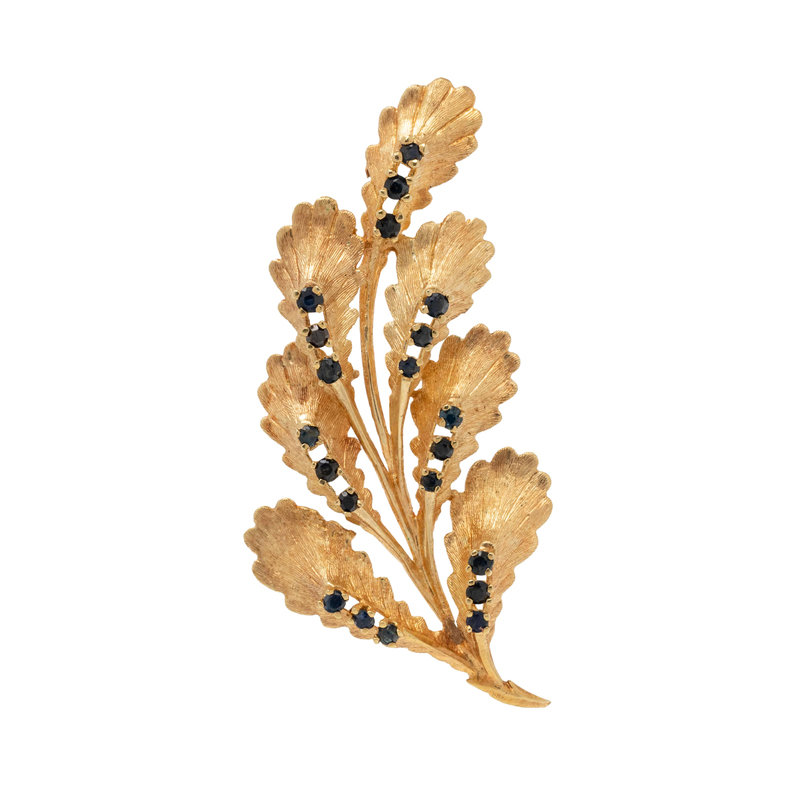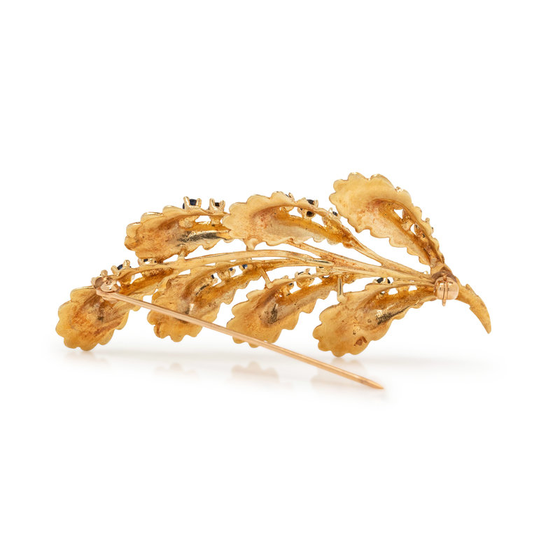 YELLOW GOLD AND SAPPHIRE LEAF BROOCH