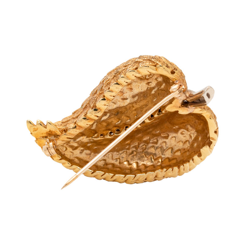 YELLOW GOLD AND DIAMOND LEAF BROOCH