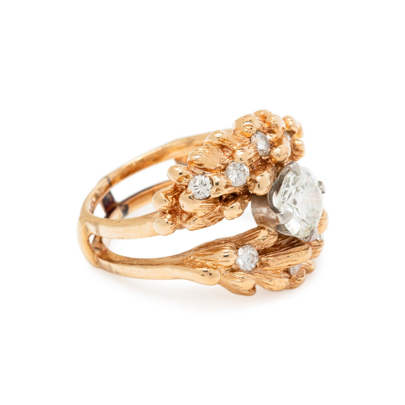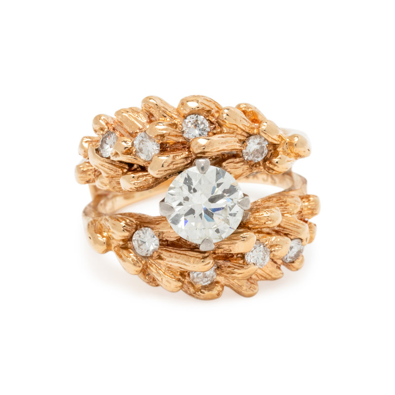 Containing one round brilliant cut diamond weighing approximately 0.95 carat and eight round brilliant cut diamonds weighing approximately 0.30 carat total.