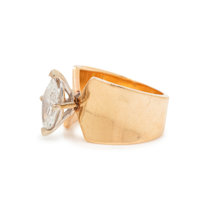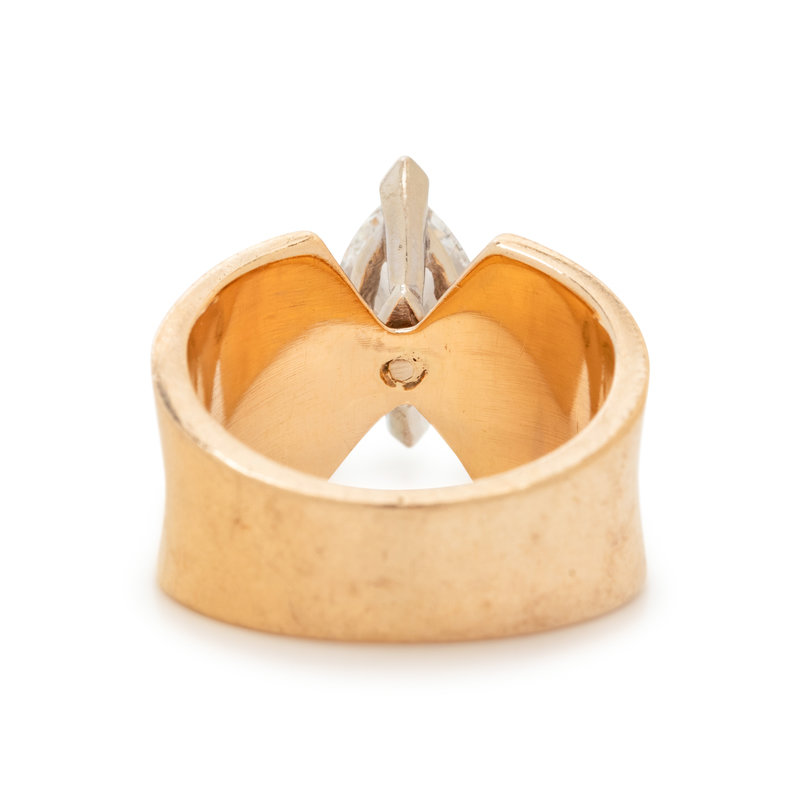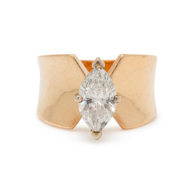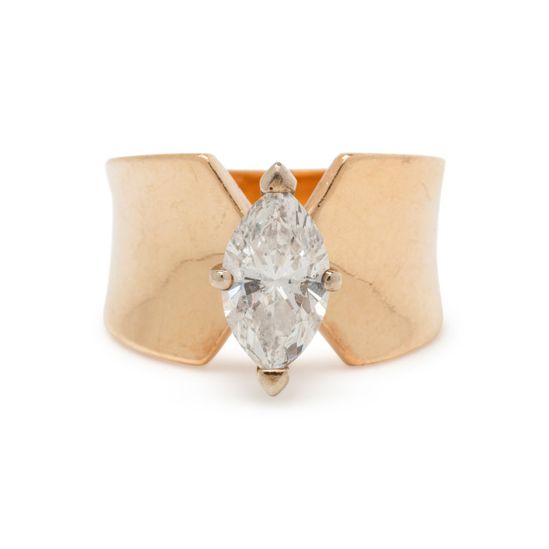 Containing one marquise cut diamond weighing approximately 1.30 carats.