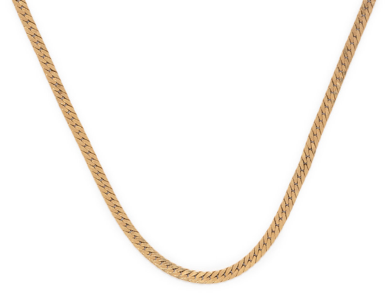 Consisting of a flattened curb link chain measuring approximately 3.30 mm wide.