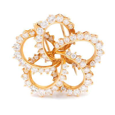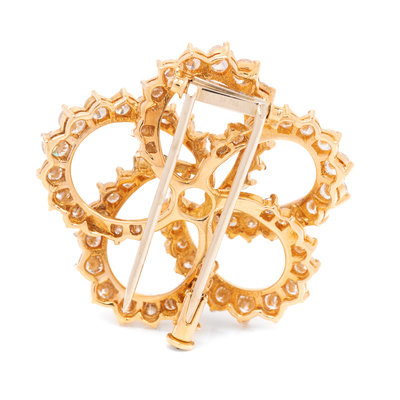 Containing 65 round brilliant cut diamonds weighing approximately 2.35 carats total. Mounted in yellow gold.