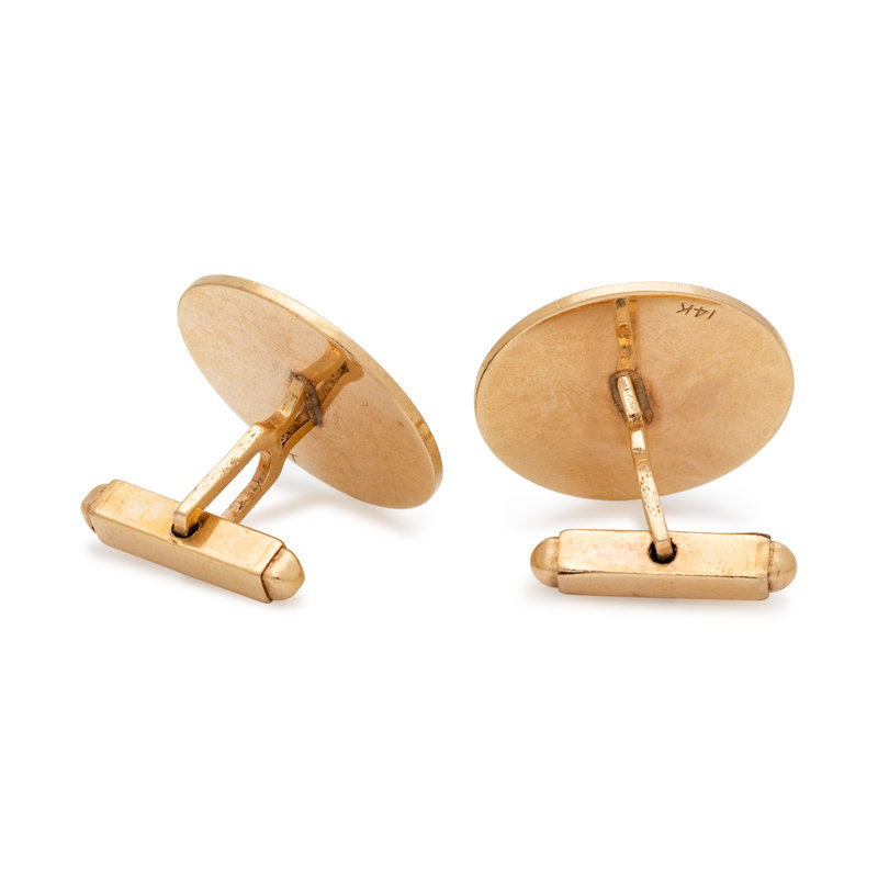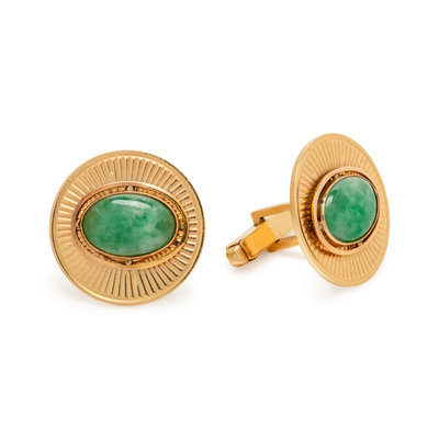 Containing two oval cabochon jade measuring approximately 14.45 x 9.90 mm.
