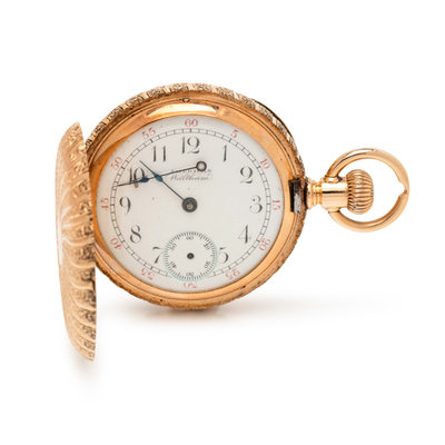 WALTHAM, 14K YELLOW GOLD HUNTER CASE POCKET WATCH