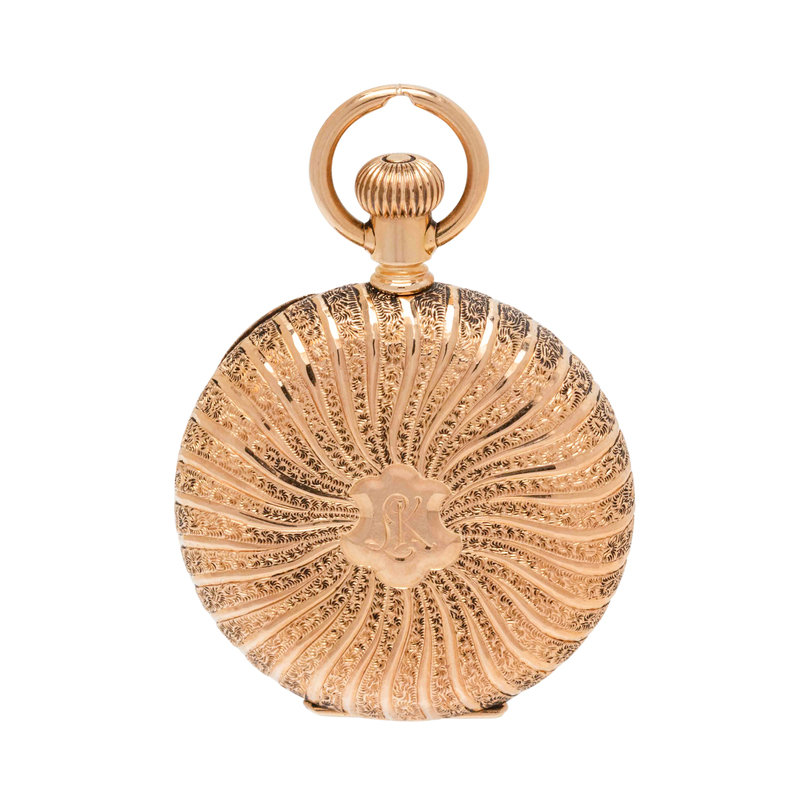34.00 mm case diameter, white single sunk dial, black Arabic numerals with outer chapter ring, subdial for seconds at 6 o'clock, engraved case with monogram engraved cartouche, stem wound and set 15 jewel movement signed AMERICAN WALTHAM WATCH Co.