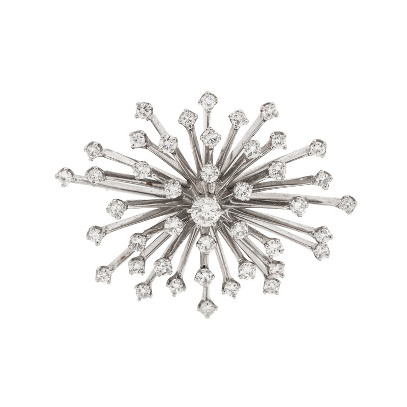 Containing one round brilliant cut diamond weighing approximately 0.20 carat and 40 round brilliant cut diamonds weighing approximately 1.40 carats total. Mounted in white gold.