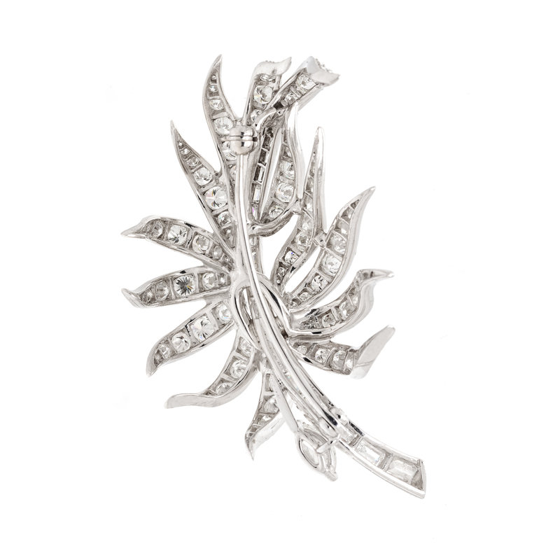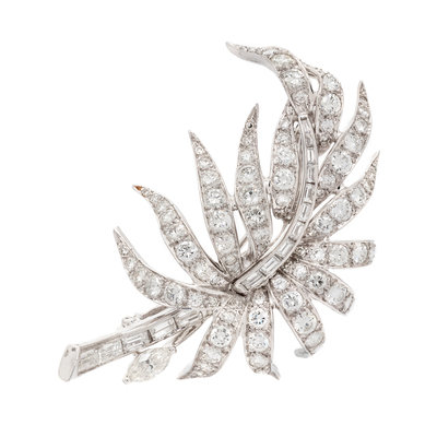 Containing one marquise cut diamond weighing approximately 0.30 carat, 15 baguette cut diamonds weighing approximately 1.00 carat total and 61 round brilliant cut diamonds weighing approximately 4.25 carats total. Mounted in platinum.
