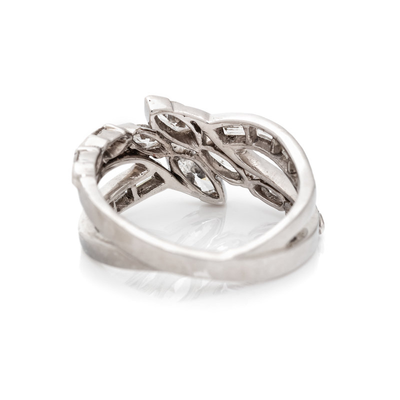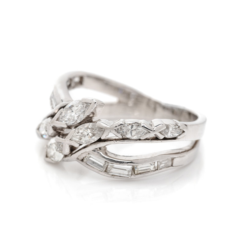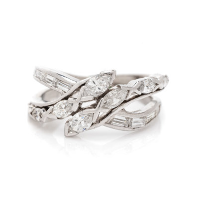 Containing eight marquise cut diamonds weighing approximately 0.60 carat total and eight baguette cut diamonds weighing approximately 0.40 carat total. Mounted in platinum.
