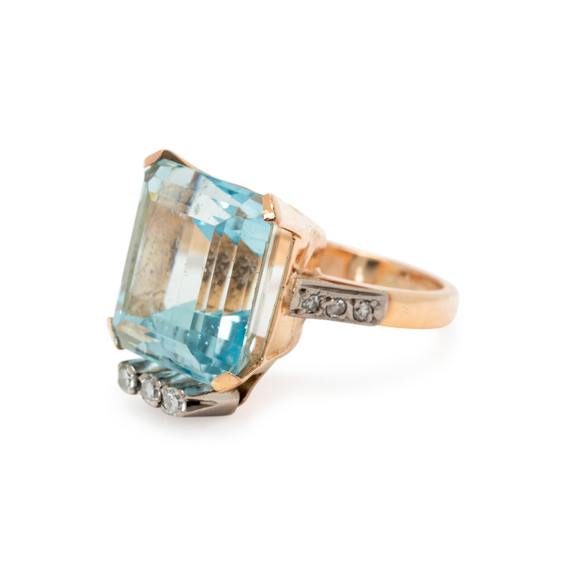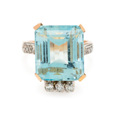 AQUAMARINE AND DIAMOND RING