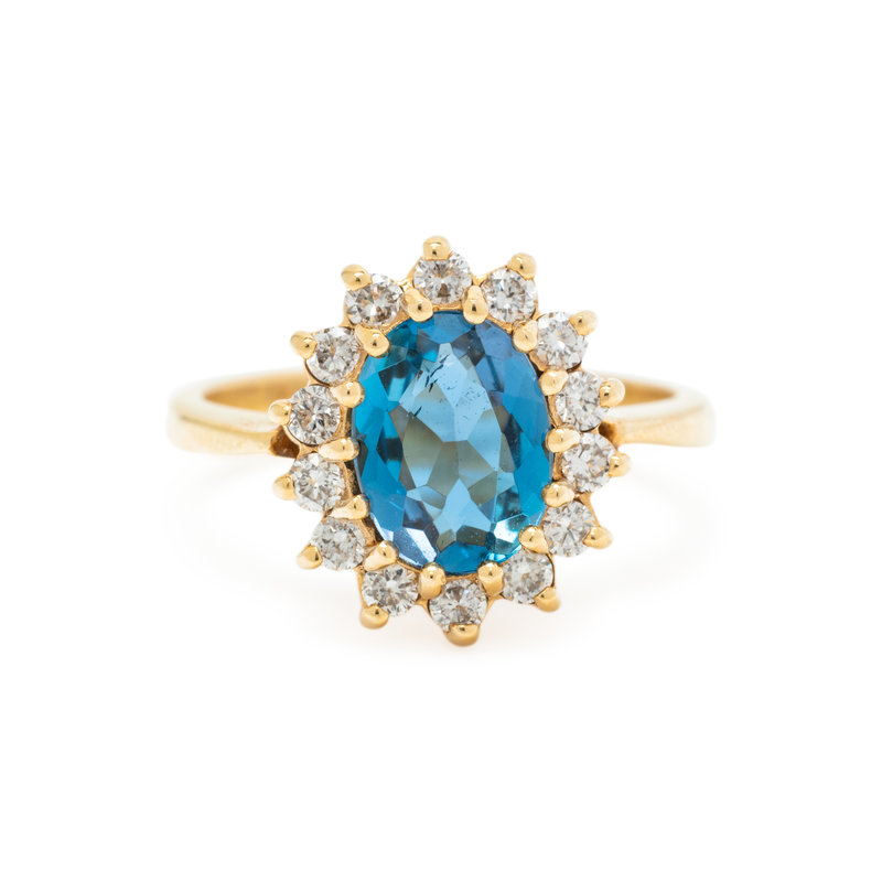AQUAMARINE AND DIAMOND RING