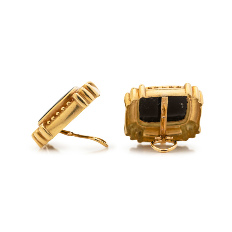 YELLOW GOLD AND ONYX EARCLIPS