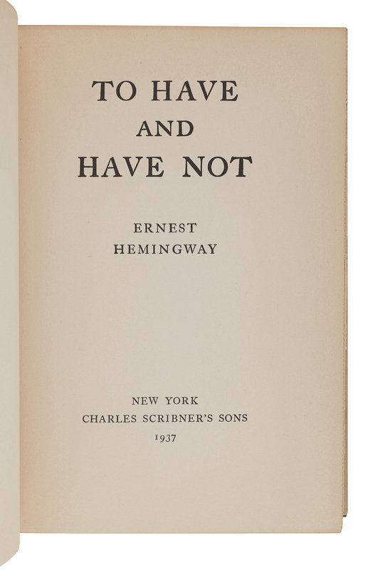 HEMINGWAY, Ernest (1899-1961). To Have and Have Not. New York: Charles Scribner’s Sons, 1937.