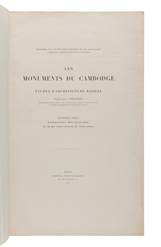 DOHRING, Karl Von. Buddhistische Templanlagen in Siam. Bangkok, Siam: Asia Publishing House, 1920. -- GROSLIER, George. La Sculpture Khmere Ancienne. Paris: Les Editions G. Cres & Co., 1925. -- INDIA HOUSE. A Descriptive Catalogue of the Marine Collection to be found at India House. New York: The Sign of the Gosden Head 1935. LIMITED EDITION, number 667 of 1,000 copies. --ROWLAND, Benjamin. Wall-Paintings of India Central Asia & Ceylon. Boston: The Merrymount Press, 1938. Limited Edition, number 405 of 500 copies. -- Broderies Hindoues. Paris: Ernst Henri, editeur, n.d. -- And 3 others. Together, 8 works in 10 volumes, large folio or 4to, most first editions, all in cloth or cloth-backed boards, condition generally good, complete list available on request.