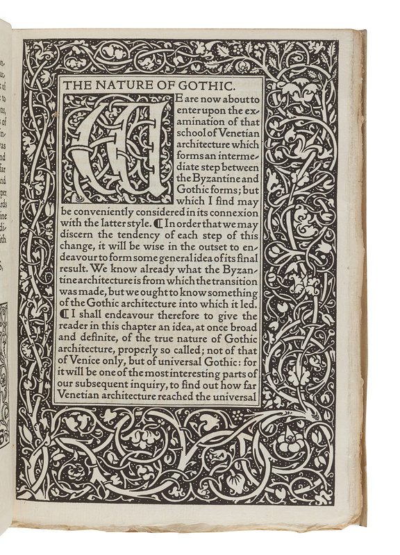 [KELMSCOTT PRESS]. RUSKIN, John (1819-1900). The Nature of Gothic: A Chapter of the Stones of Venice. Hammersmith: The Kelmscott Press for George Allen, 1892.