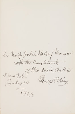 PRESENTATION COPY, INSCRIBED BY KUNZ: "To Miss Julia Halsey Munson, with the compliments of the senior author George F. Kunz New York July 10 1913." A FINE COPY of "this beautiful example of modern book design, executed in high quality materials...prized not only for the enormous amount of reliable information that it contains, indeed still unmatched in any work since, but also for the large number of high quality illustrations in black and white" (Sinkankis 3690).