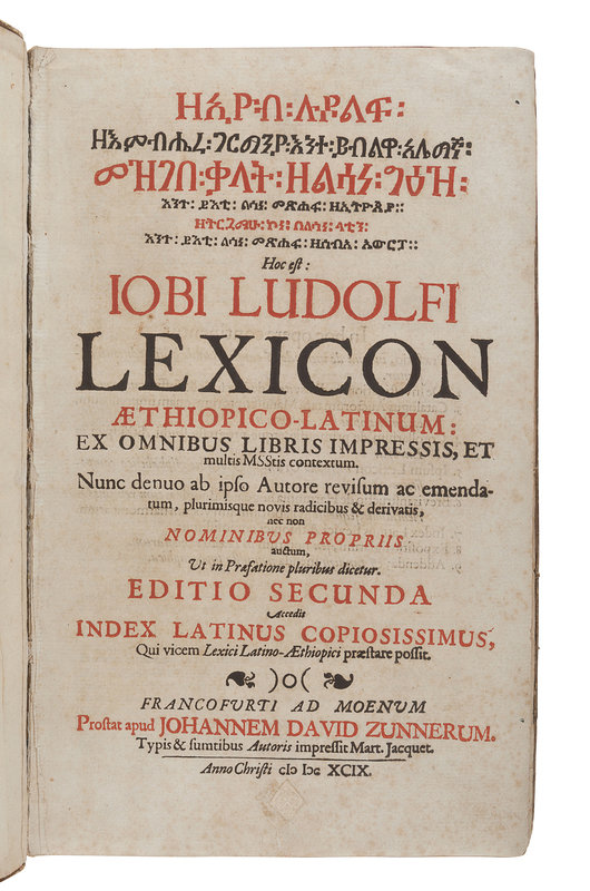 LUDOLF, Hiob (1624-1704). Lexicon Aethiopico-Latinum: ex omnibus libris impressis, et multis MSStis contextum... Editio secunda. Frankfurt: John David Zunner, 1699.