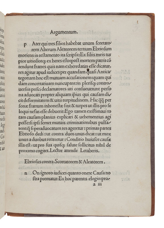 BEROALDUS, Philippus (1453-1505). Declamatio ebriosi, scortatoris et aleatoris. Bologna: Benedictus Hectoris, 1499.