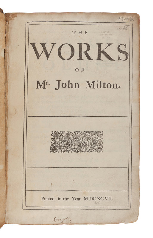 MILTON, John (1608-1674). The Works. London: n.p., 1697.