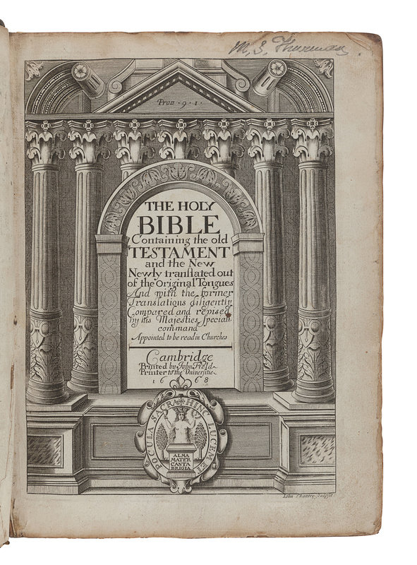 [BIBLE, in English]. The Holy Bible Containing the Old Testament and the New. -- Index Biblicus: or an Exact Concordance to the Holy Bible. -- The Whole Book of Psalms. Cambridge: John Field, 1668, 1666.