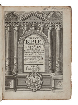 This edition, printed in small type, is widely known as the "Preaching Bible," owing to its supposed suitability for use from the pulpit. Old and New Testament: ESTC R18074 (with the title-page for the New Testament dated 1666 as here); Wing B-2277. Concordance: ESTC R25717. Psalms: ESTC 17943; Wing B-2490.