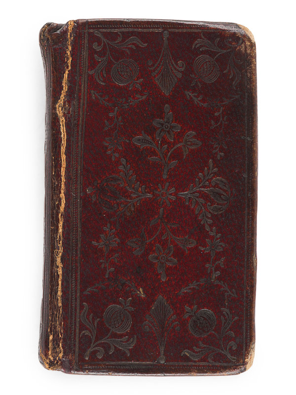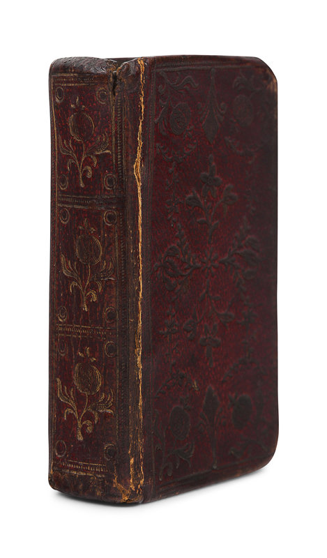 64mo (40 x 71 mm). Engraved title (mild even toning.) Contemporary tooled red morocco, smooth spine in 3 compartments gilt thistle tooling. Provenance: Bathia Dunbar (signature, 1785).