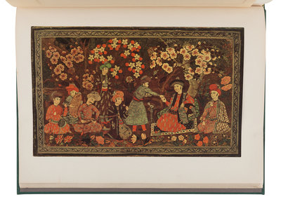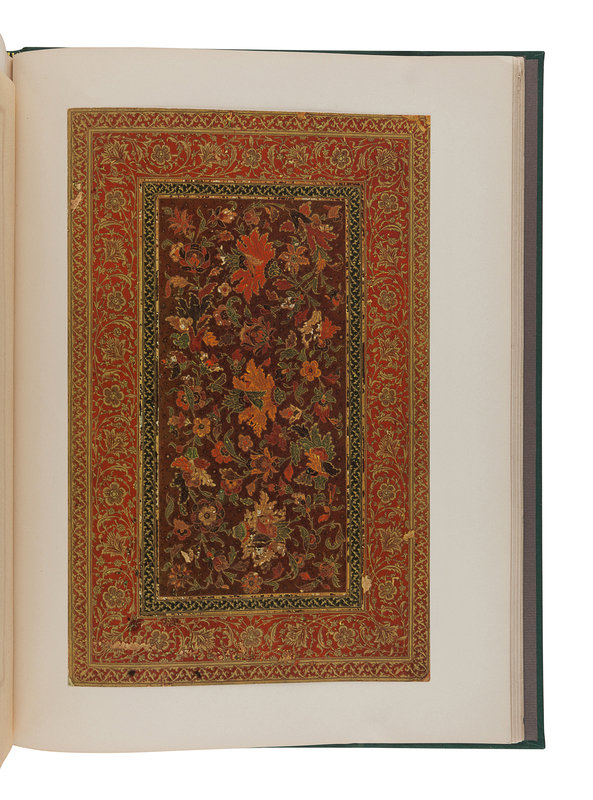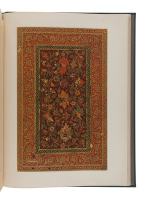 4to. 36 full-color mounted reproductions of Islamic book bindings, title in black with multi-colored border, text printed with gilt borders. Later green cloth, green morocco gilt spine label. Provenance: C. T. Loo & Co. (bookseller’s stamp).