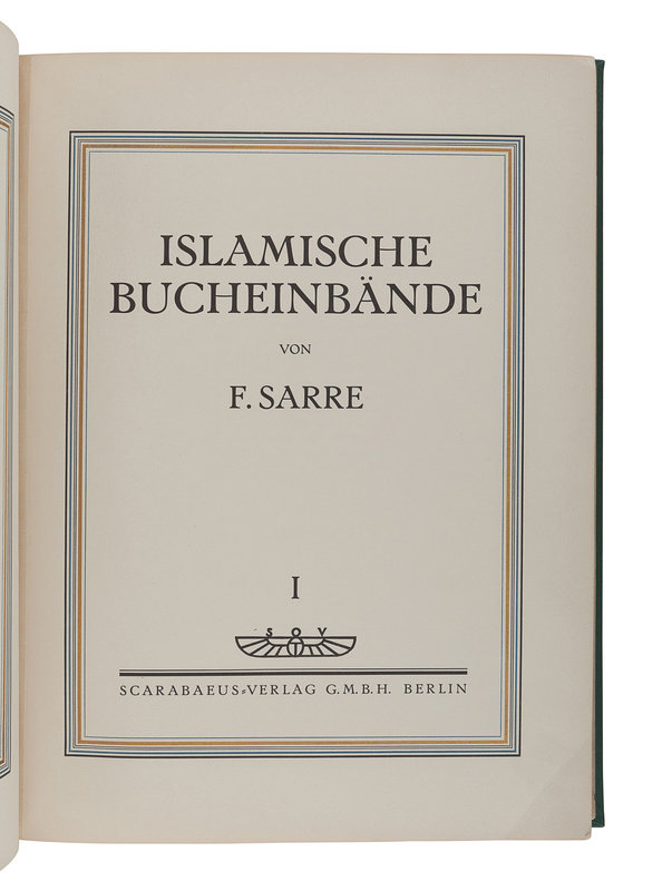[MIDDLE EASTERN ART]. SARRE, Friedreich (1865-1945). Islamische Bucheinbande. Berlin: Scarabaeus Verlag, preface dated 1923.
