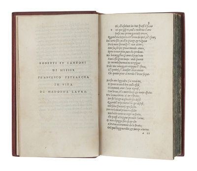 Third Aldine edition of the Canzoniere, preceded by the 1501 and 1514 editions. Following the death of Andrea d'Asolano in 1529, a newly-reopened Aldine press issued a fourth edition of Petrarch in 1533. Adams P-794.