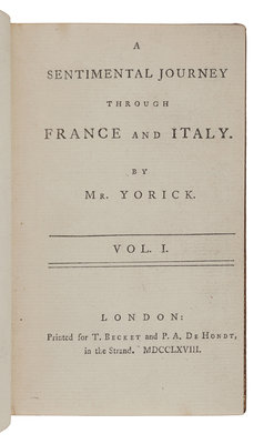 STERNE, Laurence (1713-1768). A Sentimental Journey Through France and Italy. London: T. Becket and P.A. De Hondt, 1768.