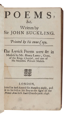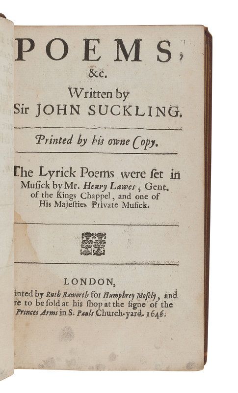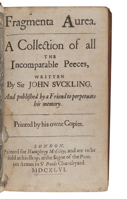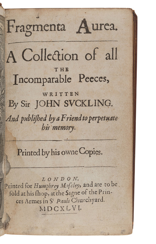 SUCKLING, John, Sir (1609-1642). Fragmenta aurea. A Collection of All the Incomparable Peeces... London: for Humphrey Moseley, 1646.