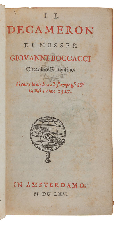 BOCCACCIO, Giovanni (1313-1375). Il Decameron. Amsterdam: [Elzevir], 1665.