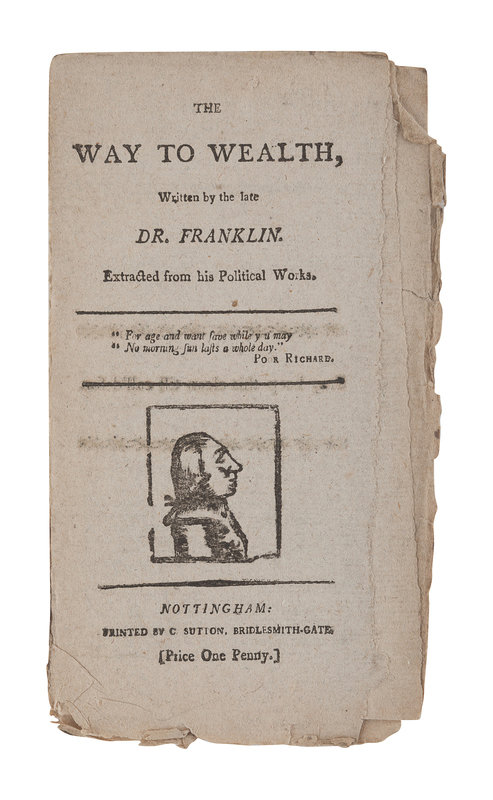 FRANKLIN, Benjamin (1706-1790). The Way to Wealth, written by the late Dr. Franklin. Extracted from his Political Works. Nottingham: C. Sutton, n.d [but ca 1800].