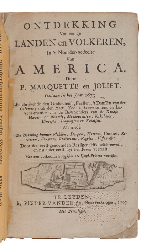 MARQUETTE, Jacques (1637-1675). Ontdekking Van eenige Landen en Volkeren, in 't Noorder-gedeelte Van America. Door P. Marquette en Joliet. Gedaan in het Jaar 167. Leiden: Pieter Vander Aa, 1707.