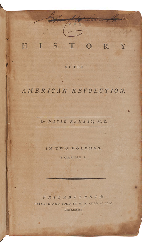 RAMSAY, David (1749-1815). The History of the American Revolution. Philadelphia: R. Aitken & Son, 1789.