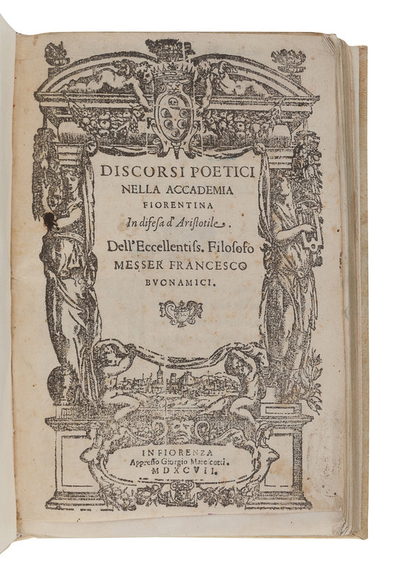 BUONAMICI, Francesco (1533-1603). Discorsi Poetici Nella Accademia Fiorentina In Difesa d’ Aristotile. Florence: Giorgio Marescotti, 1597.