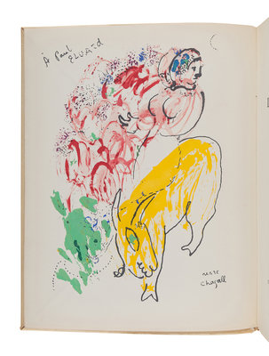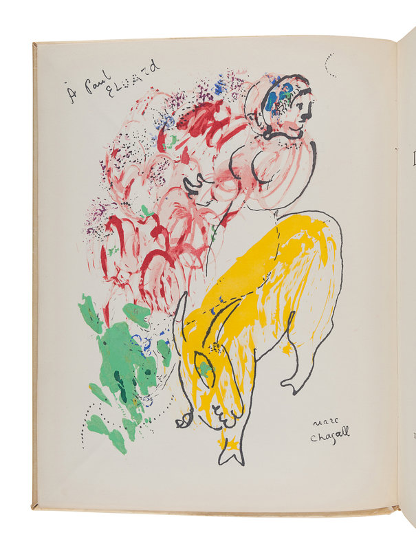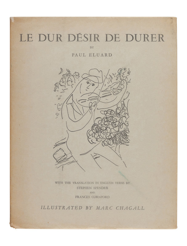 CHAGALL, Marc (1887-1985). -- ÉLUARD, Paul (1895-1952). Le Dur Désir de Durer. Stephen Spender and Frances Cornford, translators. Philadelphia and London: The Grey Falcon Press, The Trianon Press, 1950.