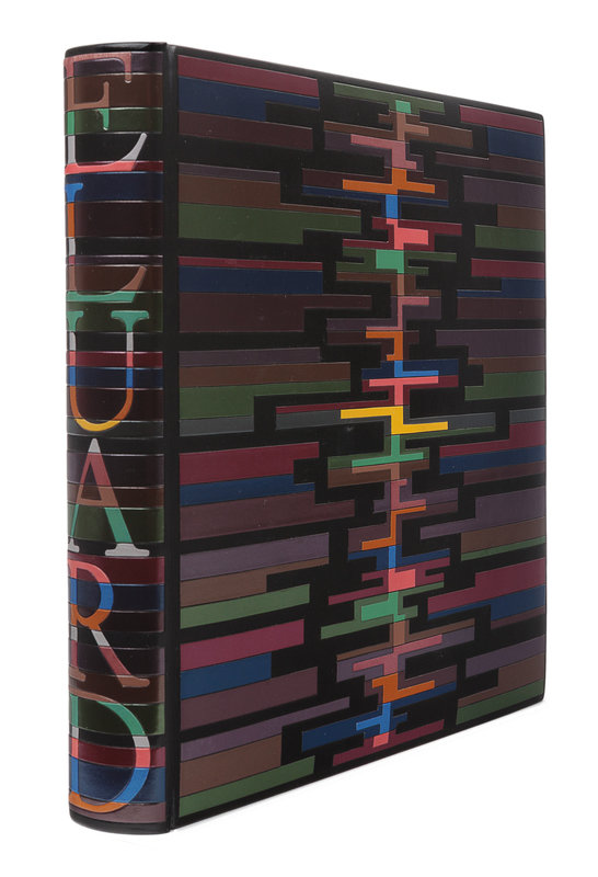 Small square 4to (190 x 190 mm). 16 etchings, drypoints, lithographs and woodcuts. 20th-century black calf decorated across both covers with an irregular mosaic of horizontal polished calf bands in different colors, the bands continuing across the smooth spine except for a narrow border at joints, with author's name incorporated in onlays of different colored calf, plain silver polished calf doublures and endpapers, edges gilt, STAMP-SIGNED BY P. L. MARTIN 1964 (a touch of slight rubbing to upper cover, otherwise fine); black calf-tipped fleece-lined chemise and slipcase.