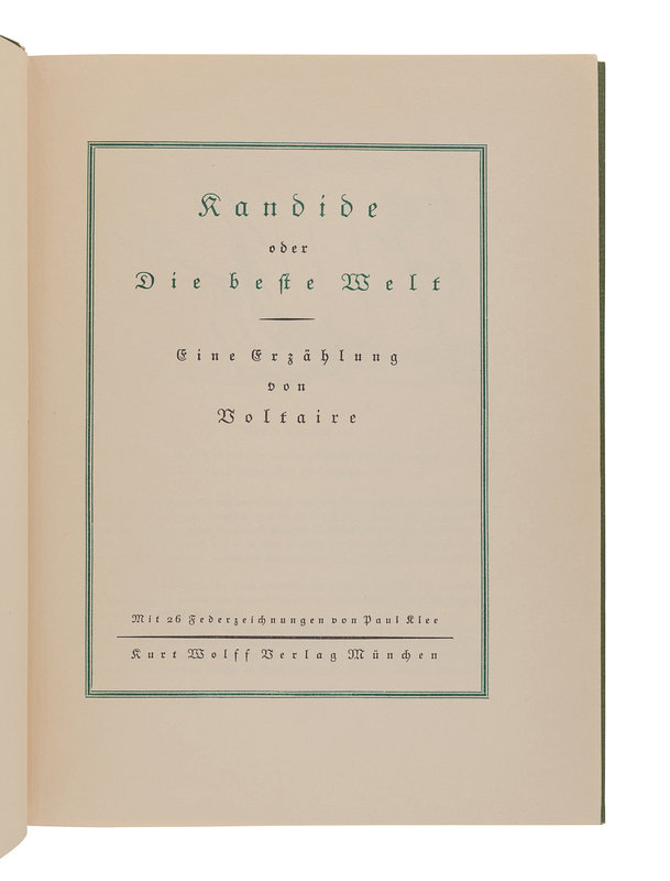 KLEE, Paul (1879-1940), illustrator. -- VOLTAIRE, Francois Marie Arouet de (1694-1778). Kandide, oder Die beste Welt. Munich: Kurt Wolff, [1920].