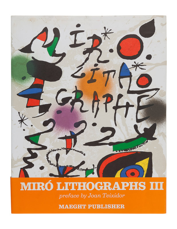 3 volumes (of 6), comprising vols.I-III, 4to. 27 original lithographs, numerous reproductions of Miró’s Lithographs. Original publisher’s cloth, original lithographic dust jackets (vol.I dust jacket has minor creasing to extremities and slight soiling); original wrap around bands to vol.II and vol.III; original glassines to vol.II and vol.III; later slipcase to vol.I. Provenance: vol.III, Barron’s (bookseller’s label).