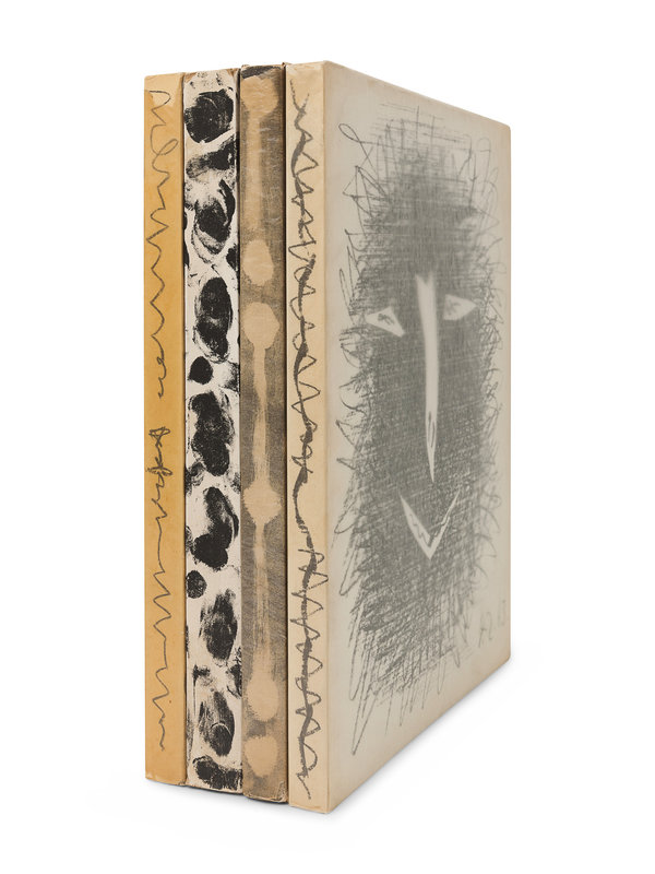 4 volumes, folio. 4 original lithograph frontispieces by Picasso, numerous reproductions. Original lithographed paper wrappers by Picasso (a few hinges starting, slight wear to spine ends); original glassines (light wear to extremities, some tearing with losses to vol.II and III).