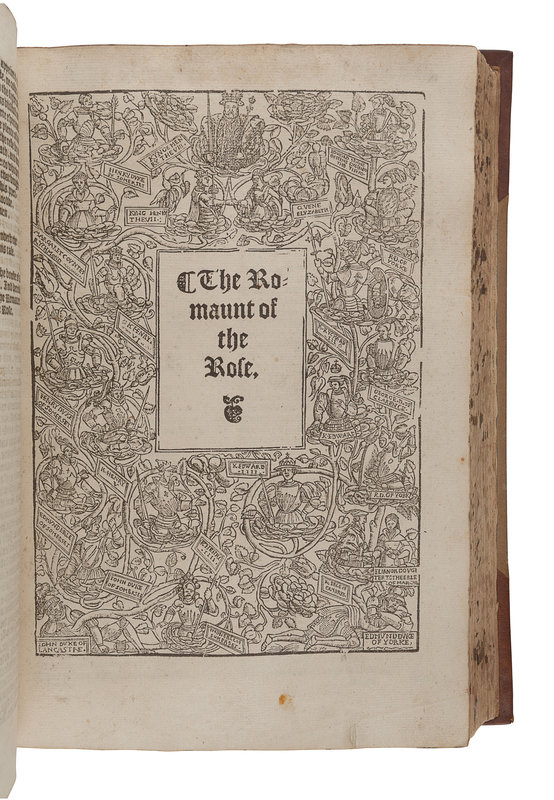 Fifth edition of the Collected Works, one of two recorded issues with this date: as here, with the preliminaries collating A6, and another with preliminary woodcuts and with preliminaries collating A4. Traditionally, it has been believed that the illustrated issue was printed first, with the cuts omitted in the second issue. More recent scholarship suggests that the printer came into possession of the woodcuts belatedly, and that the unillustrated issue was first (see David R. Carlson, "The Woodcut Illustrations in Early Printed Editions of Chaucer's Canterbury Tales", in Chaucer Illustrated: Five Hundred Years of the Canterbury Tales in Pictures, British Library, 2003). The text, edited by John Stowe, is based on William Thynne's translation, which was the first serious attempt at a critical edition; the majority of the works added to here to the Chaucer canon for the first time are spurious. ESTC S107207; Grolier Langland to Prior 42; Pforzheimer 176; STC 5076.