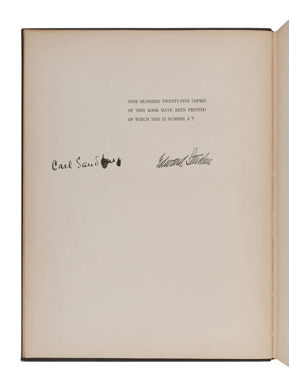 FIRST EDITION, LIMITED ISSUE, number 27 of 925 copies SIGNED BY SANDBURG AND STEICHEN.