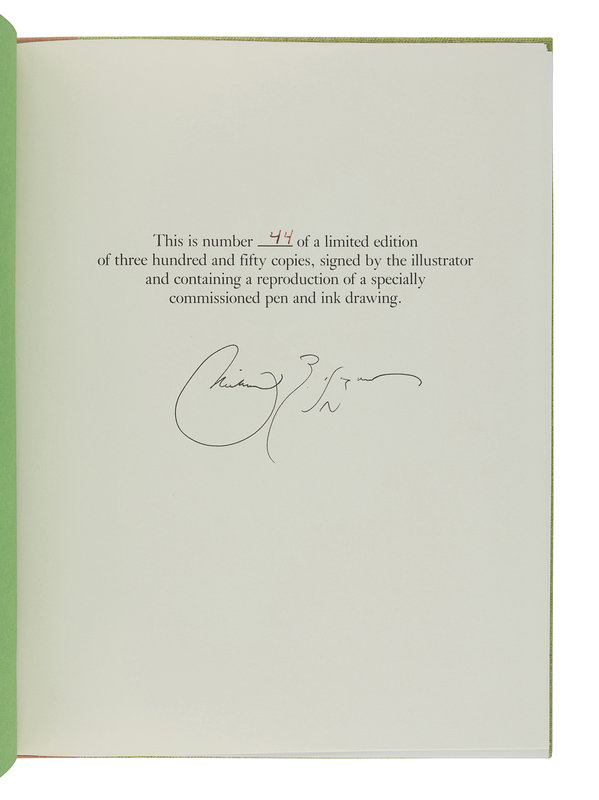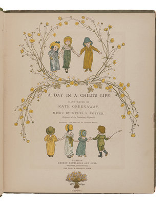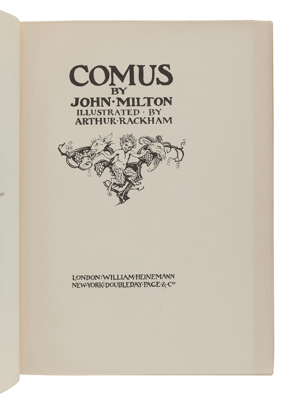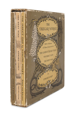 GOREY, Edward. The Vinegar Works. The Gashlycrumb Tinies; The Insect God; The West Wing. New York: Simon & Schuster, 1963. 3 volumes. Provenance: Joan Hilda Baum (bookplate). FIRST EDITION. -- GRAHAME, Kenneth. The Reluctant Dragon. New York: Holt, Rinehart and Winston, 1983. FIRST EDITION. -- GREENAWAY, Kate, illustrator. A Day in a Child’s Life. London: George Routledge and Sons, n.d. Music by Myles B. Foster. FIRST EDITION. --RACKHAM, Arthur, illustrator. MILTON, John. Comus. London and New York: William Heinemann and Doubleday Page & Co., n.d. -- Together, 4 works in 6 volumes, 4to or smaller, first editions where indicated, all as issued in original publisher’s bindings, condition generally fine.